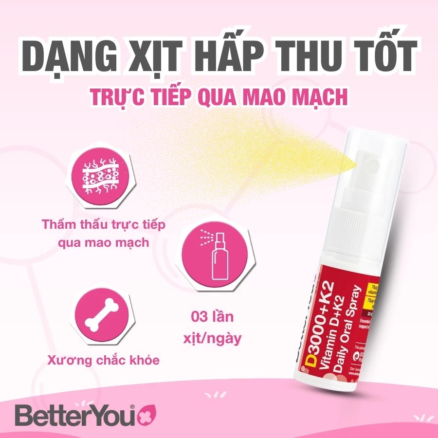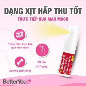 - 3 lần xịt cung cấp 3000 IU (75 μg (microgam)) vitamin D cùng với 75 μg (microgam) vitamin K2.