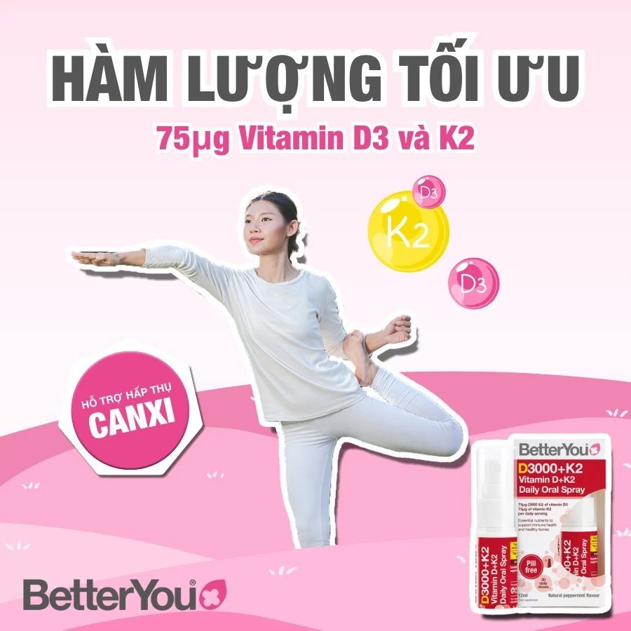 - D3K2 còn rất cần thiết cho hệ miễn dịch, hỗ trợ cho nhiều bệnh lý như huyết áp, tiểu đường…